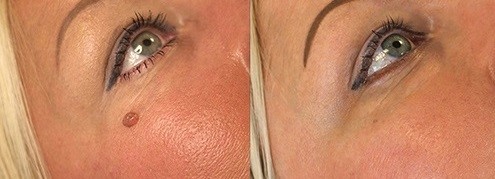 Процедура длится не более 15 минут (независимо от того, что удаляется), после чего на обработанном участке образуется плотная корочка. В течение недели она отпадает, и от родинки не остается следа. Это особенно важно, если удаление производится на открытых участках, как лицо.