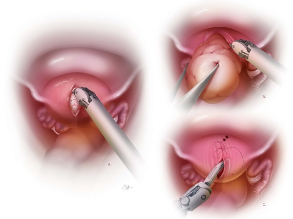 Использование лапароскопической техники для выполнения имеет схожие с влагалищным доступом плюсы: низкая инвазивность, косметический эффект, короткие сроки нахождения в стационаре в послеоперационном периоде.