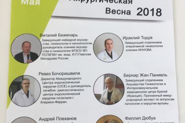 25-26 мая 2018 г. в г.Тбилиси (Грузия) в клинике "Innova" в рамках постоянно действующего обучающего цикла "Времена года" прошла международная конференция "Хирургическая весна 2018". Были представлены лекции и прямые трансляции операций по актуальным проблемам хирургической гинекологии. В качестве приглашенного эксперта в конференции принял участие профессор А.Н.Плеханов.