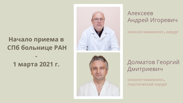 С 1 марта 2021 г. в Отделении маммологии СПб больницы РАН ведут прием: