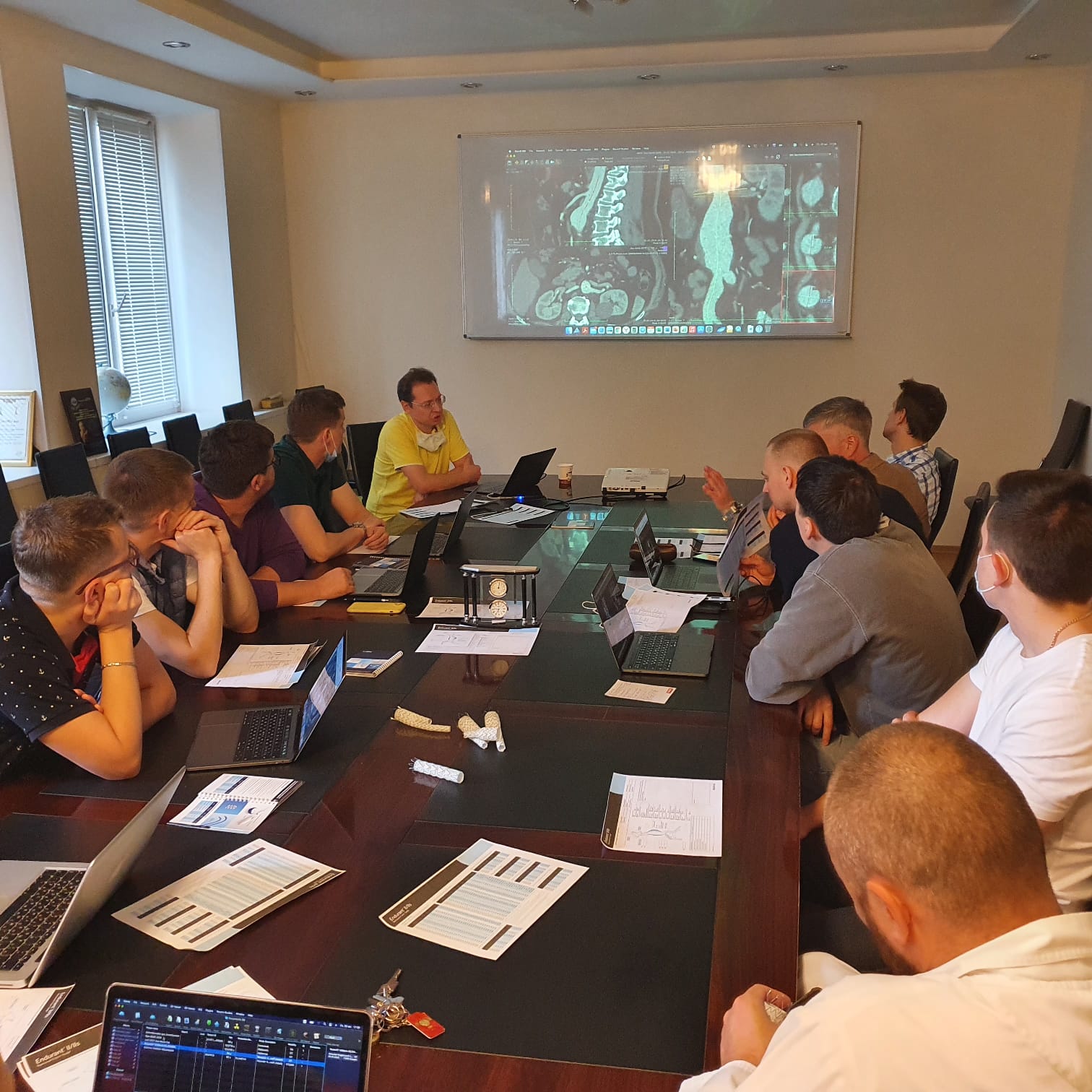 При поддержке администрации СПб больницы РАН и главных специалистов страны в области рентгенэндоваскулярной хирургии, к.м.н. Кочанова Игоря Николаевича и к.м.н. Полякова Романа Сергеевича, прошел круглый стол по вопросам лечения сложной аневризмы брюшного отдела аорты. Были разобраны сложные случаи, и возможные способы оперативного лечения.