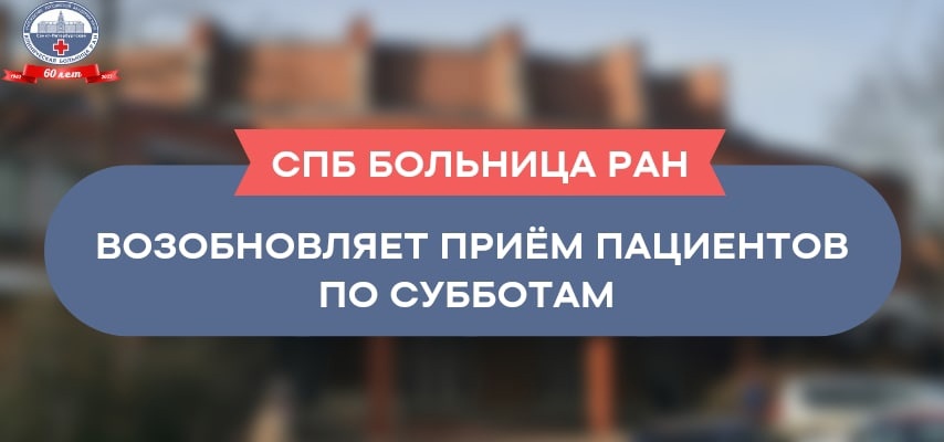 С 10.09.2022 поликлиника СПб больницы РАН возобновляет приём пациентов по субботам!