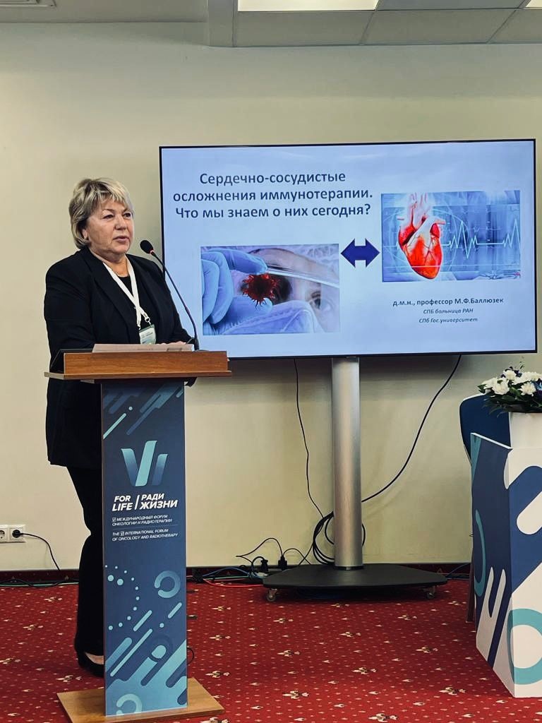 «РАДИ ЖИЗНИ — FOR LIFE», на котором Баллюзек Марина Феликсовна (Заместитель главного врача по медицинской части, руководитель кардиологической службы СПб больницы РАН, д.м.н., профессор) выступила с докладом «Сердечно-сосудистые нежелательные события иммунотерапии. Что мы знаем о них сегодня?»