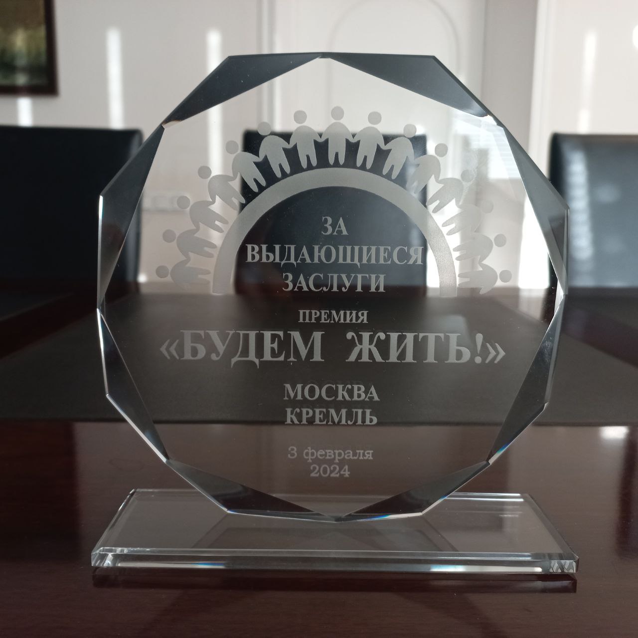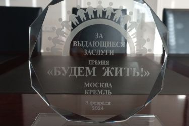 3 февраля 2024 года в Государственном Кремлёвском дворце прошла церемония награждения Всероссийской премии «Будем жить!». Она присуждается за особый вклад в борьбу с раком ассоциацией онкологических пациентов «Здравствуй!». Премия проводится ежегодно с 2017 г. и привлекает более 5000 участников. Победителей выбирают открытым голосованием на официальном сайте премии. В этом году было награждено 111 лауреатов в 15 номинациях.