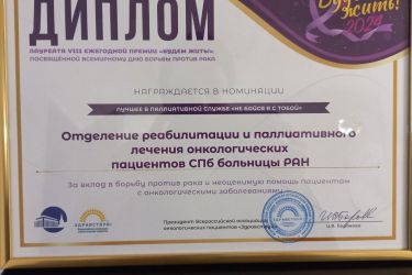 Отделение реабилитации и паллиативного лечения онкологических пациентов СПб больницы РАН победило в номинации «Не бойся я с тобой» - Лучшие в паллиативной службе. Поздравляем всю команду отделения: