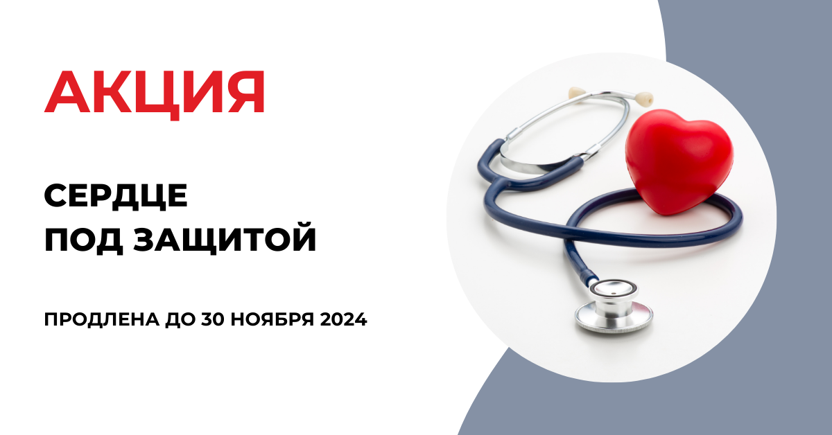 Акция "Сердце под защитой" пользуется большой популярностью у наших пациентов, поэтому мы решили продлить её до конца 2024 года. Это отличная возможность проверить здоровье сердца на специальных условиях.