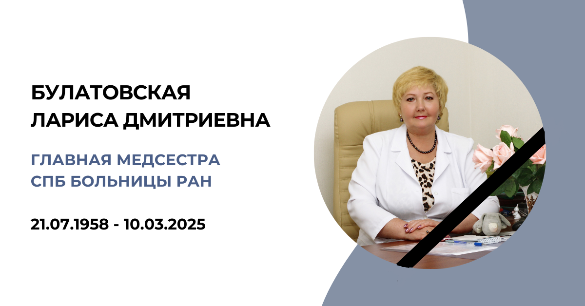 10 марта 2025 года, после продолжительной болезни, на шестьдесят седьмом году ушла из жизни Булатовская Лариса Дмитриевна Главная медсестра СПб больницы РАН.