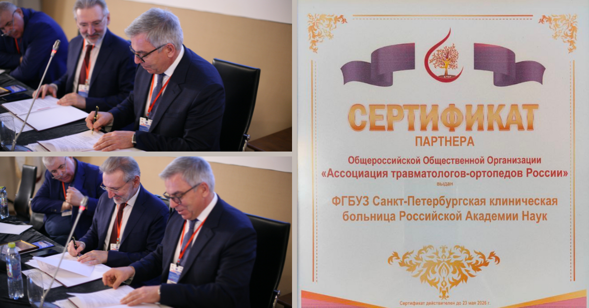 В рамках конференции был подписан важный документ — соглашение о партнёрстве между СПб больницей РАН и Общероссийской общественной организацией «Ассоциация травматологов-ортопедов России».
