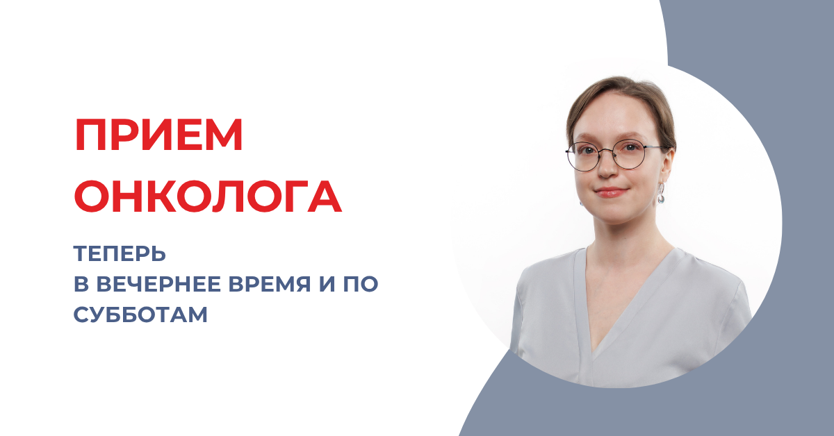 Чтобы вам было удобнее, открыли дополнительные приёмы врача-онколога в будни вечером и по субботам. Это поможет не откладывать консультацию и пройти необходимые обследования без лишних переносов.