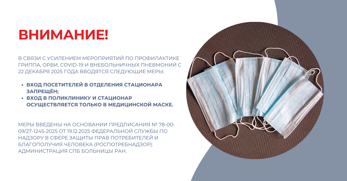 Обращаем ваше внимание! В связи с усилением мероприятий по профилактике гриппа, ОРВИ, COVID-19 и внебольничных пневмоний с 22 декабря 2025 года вводятся следующие временные меры: