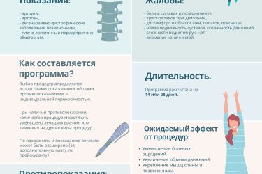 При наличии противопоказаний, количество процедур может быть уменьшено лечащим врачом или заменено на другие виды процедур.