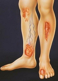 - наличие хронической венозной недостаточности (часто возникают после перенесенного ранее тромбоза вен нижних конечностей). Такие язвы называют венозными - они являются наиболее часто встречающимся видом язв и причиной обращения пациента к специалисту.